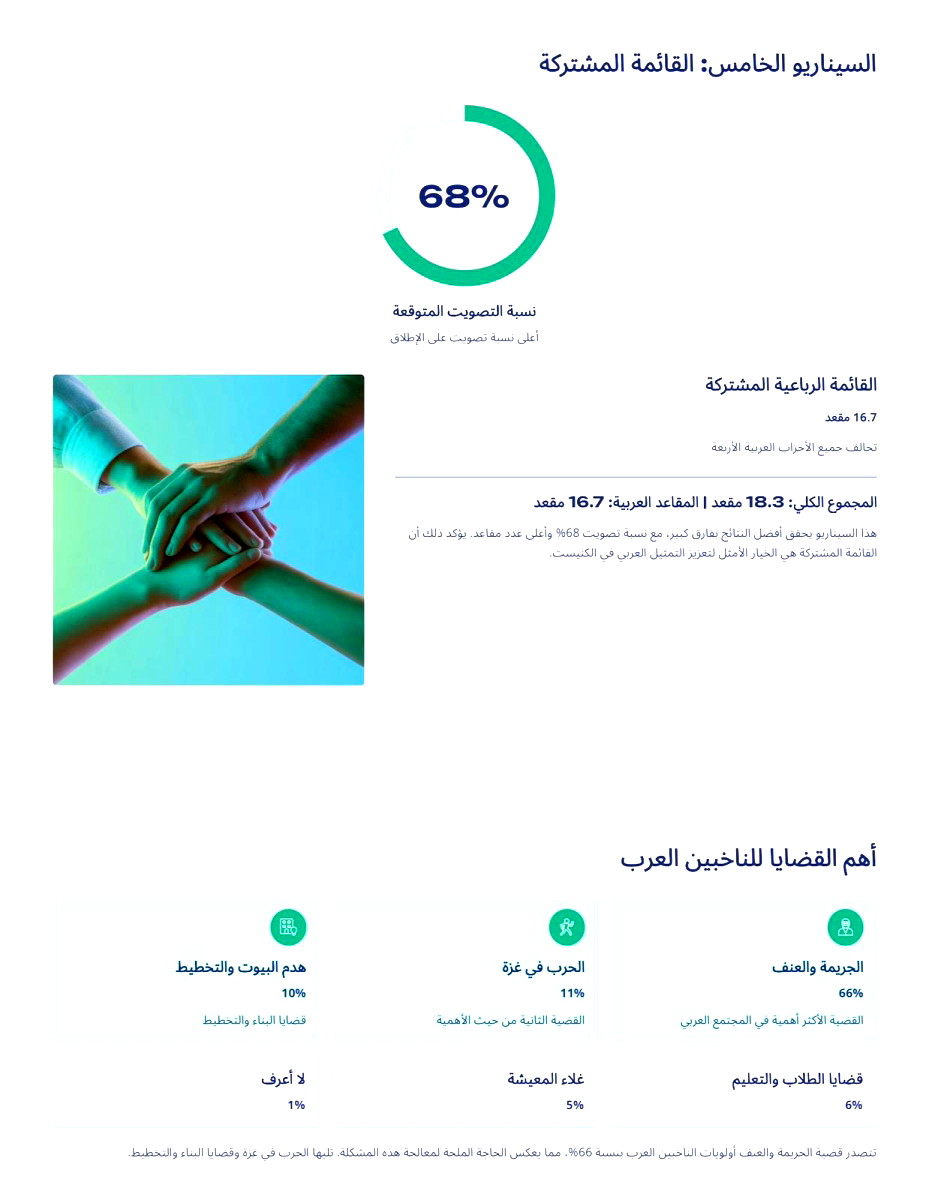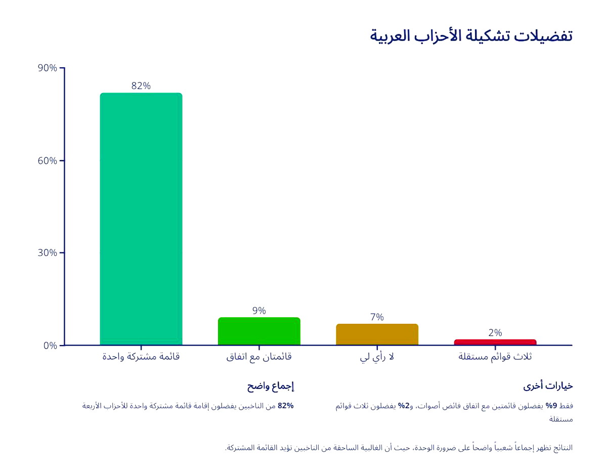٨٢٪ من الجمهور العربي يؤيد اقامة قائمة مشتركة للاحزاب الاربعة مقابل ٩٪ فقط للذهاب بقائمتين