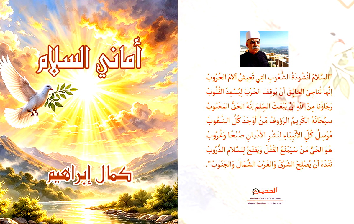 ديوان " أمَانِي السَّلام " الجديد يشمل 25 قصيدة منها: " الوَيْلَاتُ تُهَدِّدُنا " " آمِينْ يَا رَبَّ العَالَمِين " " ضَرْبُ الصَّوارِيخ " " الحَرْبُ مَعَ إيرَان " " مَا زِلْنَا نَدْعُو الله " " كُلُّ الدِّيَانَات " " آهَات " " الحَرْبُ مُسْتَمِرَّة " " السَّلام " " فِي رِثَاء ابْنِ العَمْ أَبِي فَادِي عِمَاد دَاهِش إبراهيم " " إلَهي يا خَالِقَ الكَوْن " " شوقي لِأنْ أكْتُبَ " " تَحِيَّاتِي وَحُبِّي " " أناجِيَ الله " " لَنا الصََّبْر " " الَحَرْبُ عَلَى إيرَانَ اشتعَلَت " " صُبْحًا وَمَسَاءً "" الحَرْبُ عَلى الأبْوَاب " " فِي اللَّيْلِ وَالصَّبَاح " " القَتلُ والشِّجَارُ مُسْتَمِرّ " " اعْتِزَازِي بانْتمَائِي لِمَذْهَبِ التَّوْحِيد " " الرَّاحَةُ النَّفْسِيَّة " " في رثاء الشاعر نايف سليم " " الجَرِيمَة " وغيرُها .