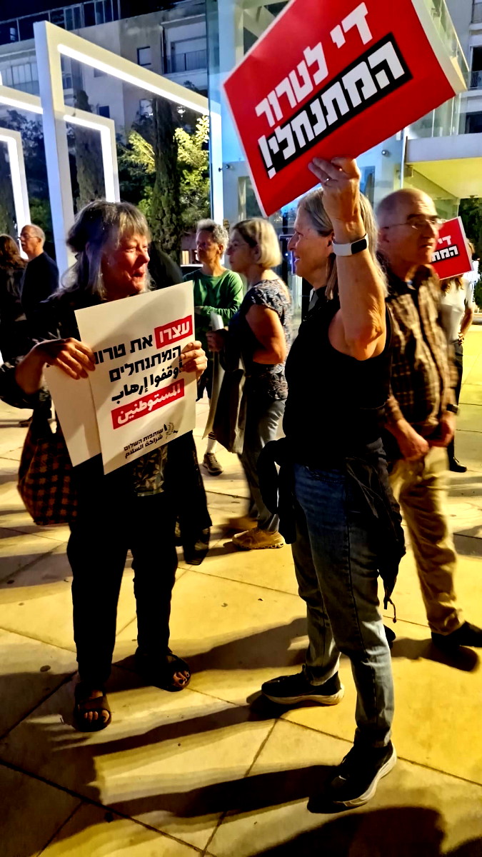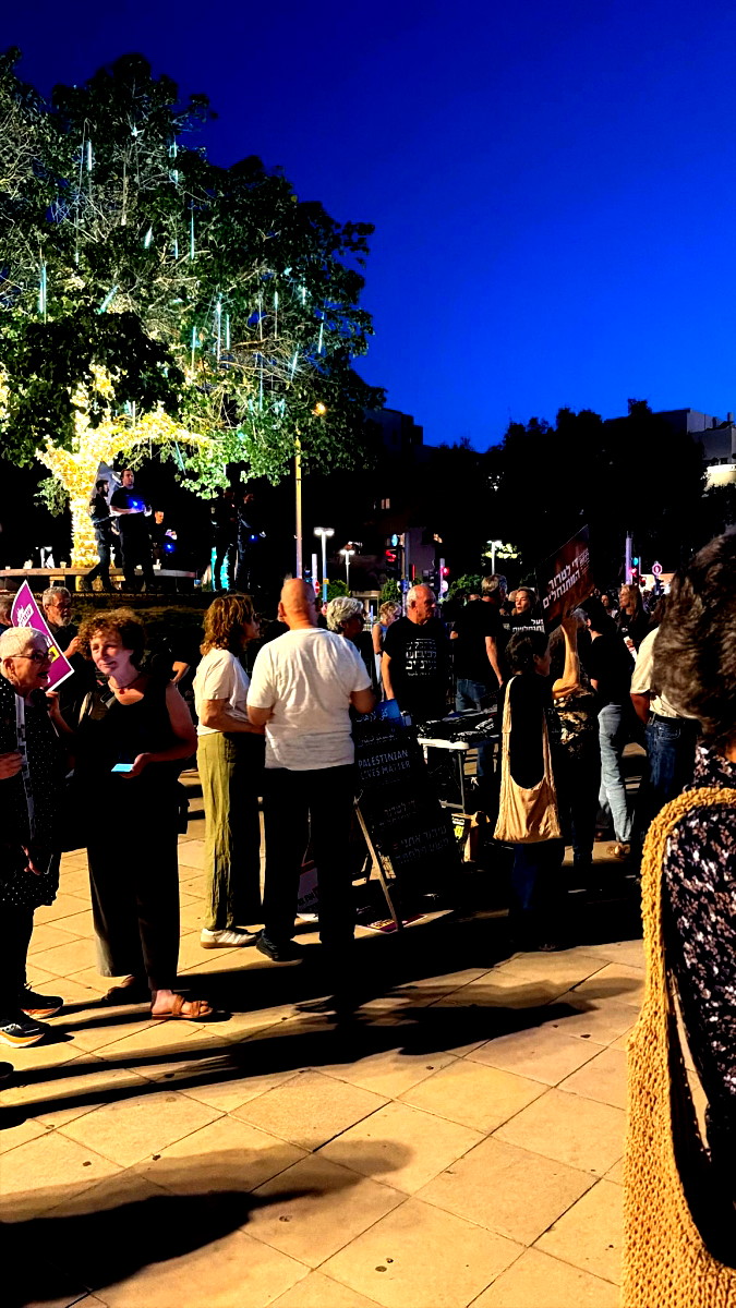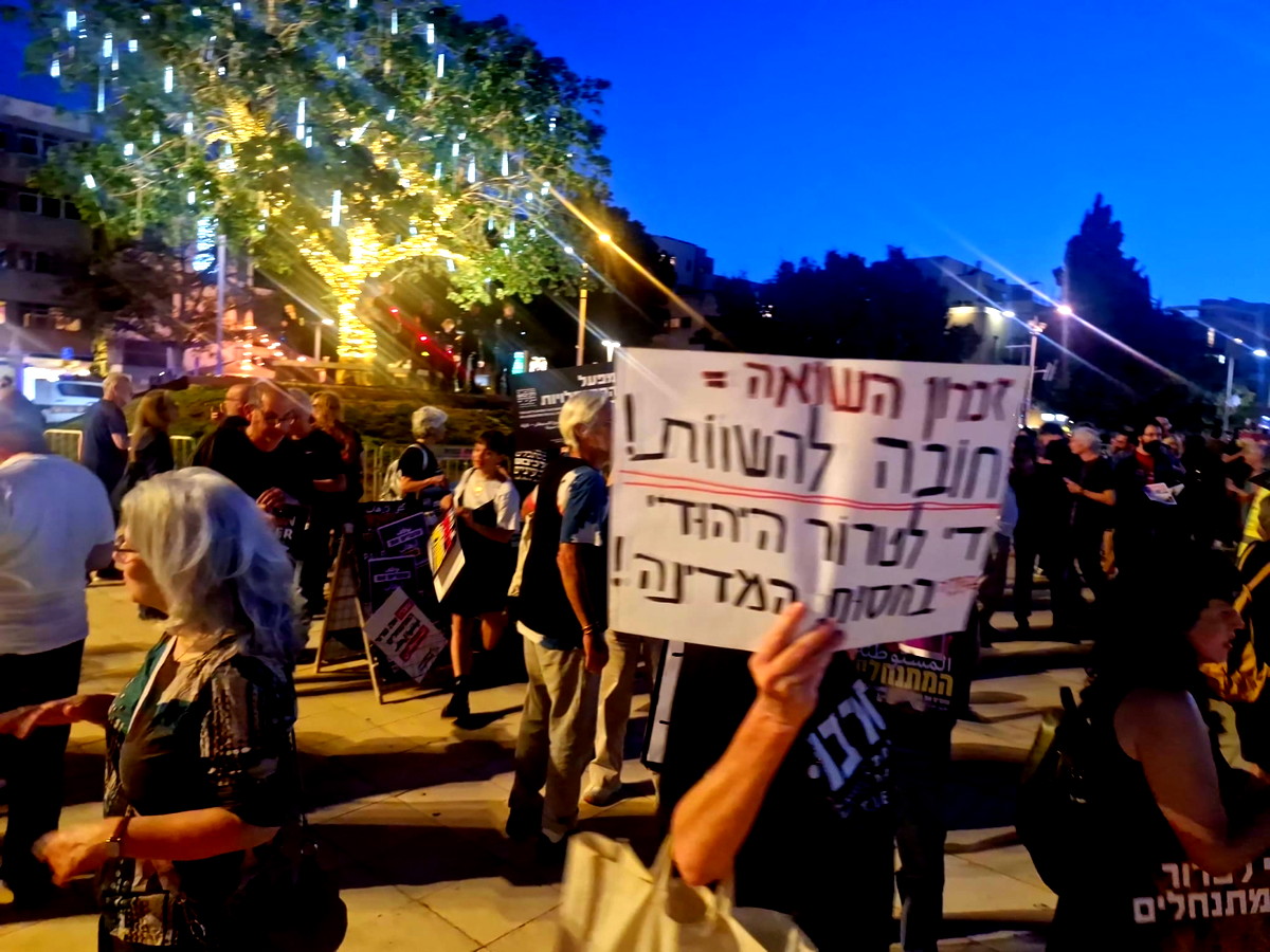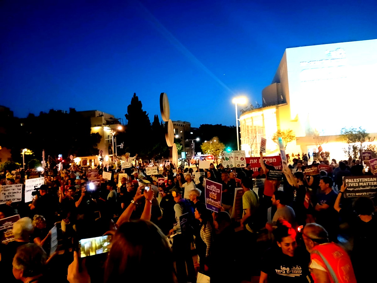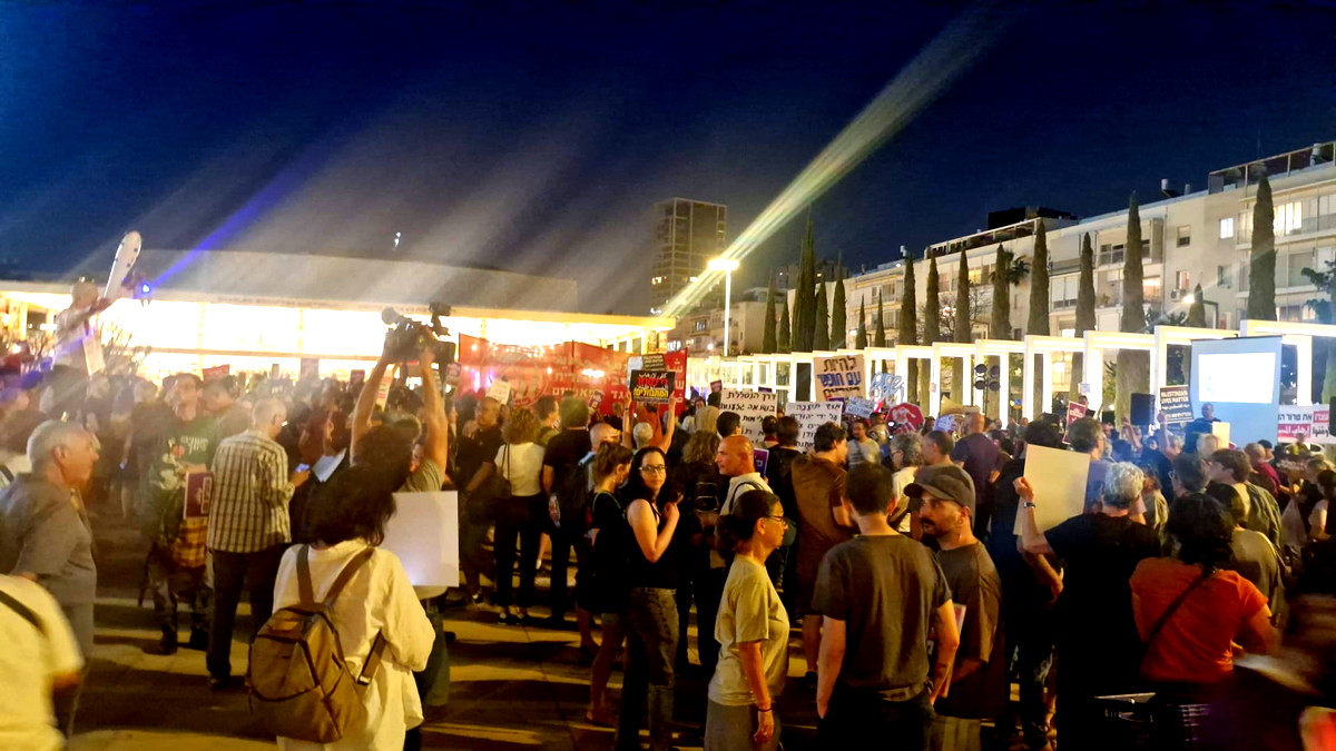يتظاهر مئات الأشخاص في ساحة هبيما وسط تل أبيب احتجاجًا على تصاعد اعتداءات المستوطنين في الضفة الغربية المحتلة، وذلك بمبادرة من ائتلاف من الحركات المناهضة للاحتلال ومنظمات المجتمع المدني.