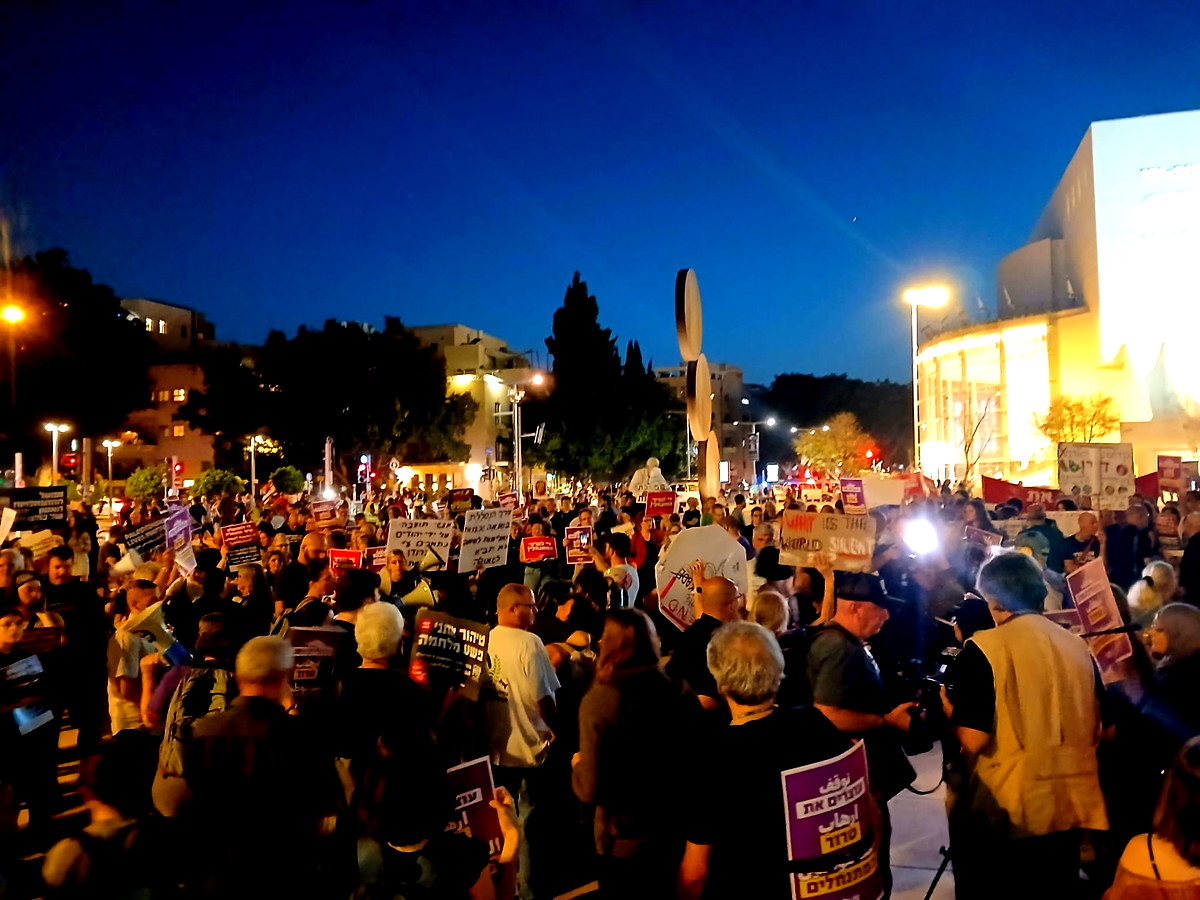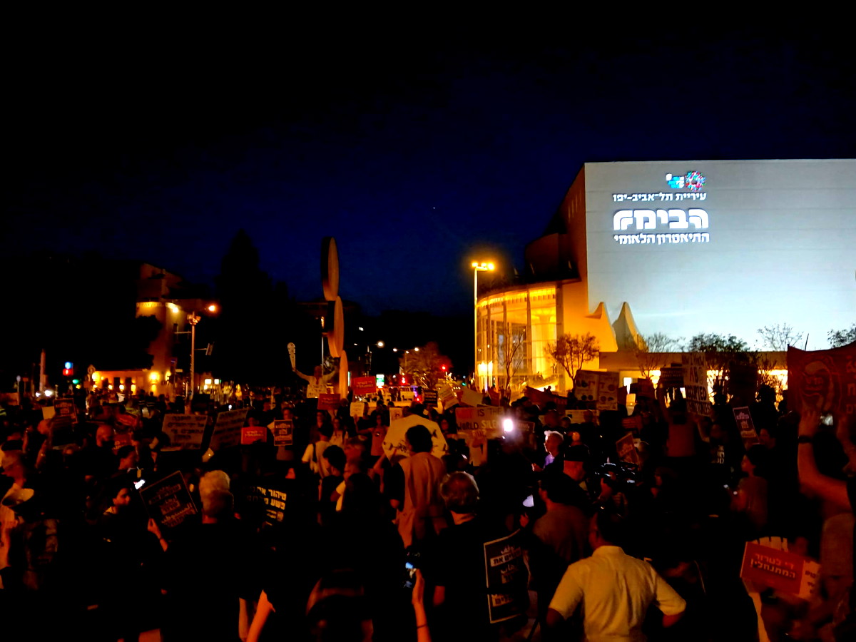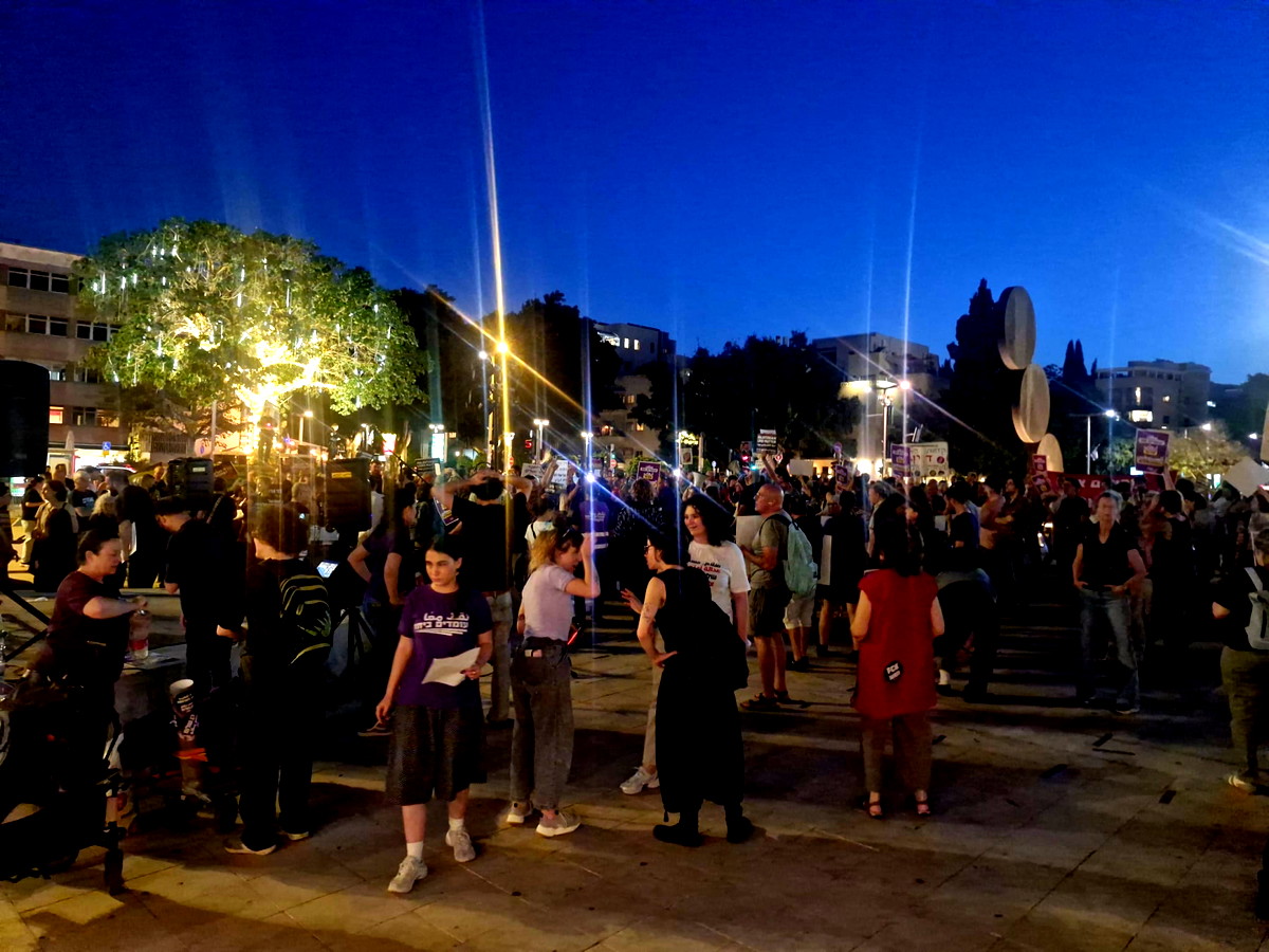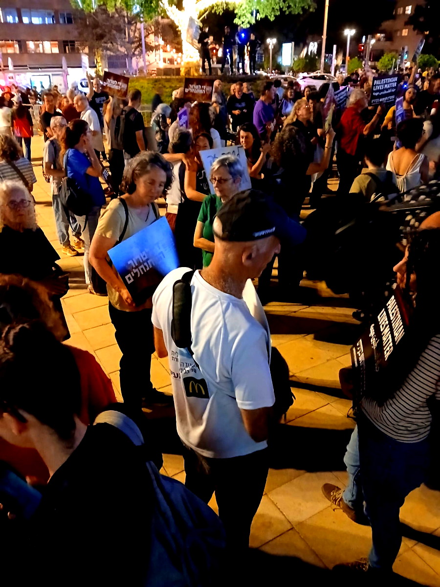 يتظاهر مئات الأشخاص في ساحة هبيما وسط تل أبيب احتجاجًا على تصاعد اعتداءات المستوطنين في الضفة الغربية المحتلة، وذلك بمبادرة من ائتلاف من الحركات المناهضة للاحتلال ومنظمات المجتمع المدني.